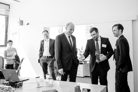 The celebration started with a short introduction from Prof. Marion Eich-Born followed by the presentation of the company as well as an outline of the way of founding of the latter by managing director Hans-Christian Fritsch. Even the Minister of Economics Wolfgang Tiefensee and the rector of the Technical University of Ilmenau Prof. Dr. Peter Scharff were present and held opening speeches. They highlighted the importance of technology startups and named Ilmsens as a prime example which we are very proud of. Afterwards we introduced our technology (M-Sequenz) to our quest by performing some experiments.