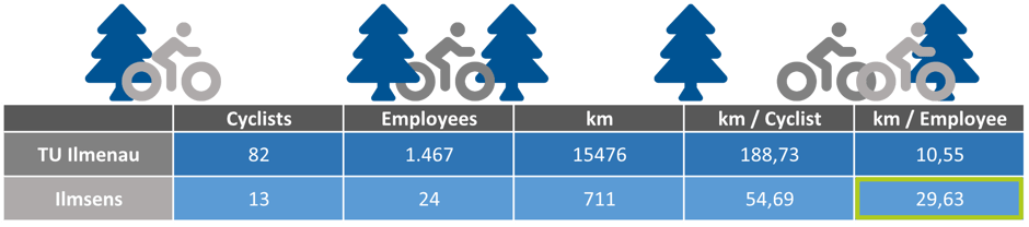 In this time we have collected a total of 711 km, which puts Ilmsens in 40th place in Ilmenau. Many thanks to our 13 colleagues who participated this year and especially to our top cyclist who contributed 273 km!