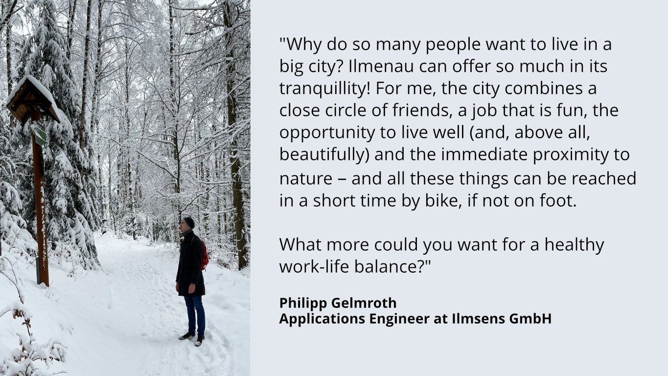 Our employees working at Ilmsens enjoy living and working in Ilmenau, regardless of whether they have children or not. What do you like most about living and working in Ilmenau?