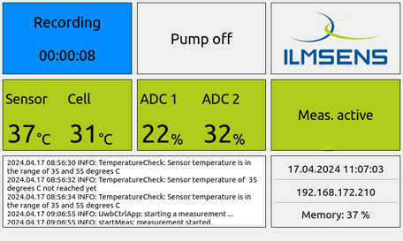 Various information are shown on the display in real-time. From information about the temperature of the measurement cell to the status of the measurement and pump.